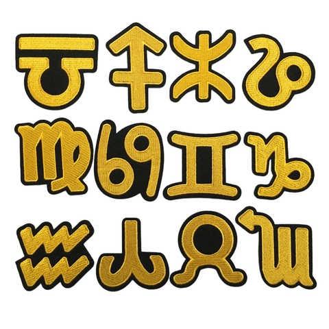 Altın zodyak desen işlemeli yama isı transferi için yapıştırıcı dekoratif demir on konfeksiyon çanta şapka aksesuarları DIY